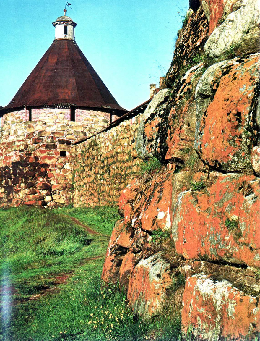 Уже после вынужденного отъезда игумена Филиппа в столицу забота о сохранении достигнутого на острове благосостояния вынуждает братию организовать защиту своих ценностей. Вокруг монастыря возводится гигантский пятиугольник оборонительных стен из огромных эрратических (ледниковых) валунов. Периметр крепости превышает 1 километр, высота — до 11 метров, а толщина у основания — около 6 метров. Над стенами поднимаются восемь башен, достигающих у вершин шатров 30 метров. Башни, согласно передовому военному опыту своего времени, далеко выступают за линию стен, обеспечивая возможность мощного флангирующего обстрела. Особенно надежно защищены въездные ворота. Их система безопасности включает в себя крутые повороты внутри проездных башен, решетки-гирсы и валунные козырьки-захабы. Соловецкая крепость — ровесница гамлетовской крепости Эльсинор — стала чудом фортификационного искусства. В XVII в. патриарх Никон назвал Соловки одной из трех главных «осударевых крепостей».