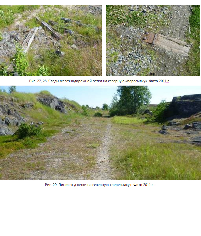 Следы железнодорожной ветки на северную "пересылку. Рис. 27-29.