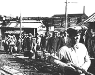 Знаменитый кадр из пропаган-дистского фильма "Соловки" реж. А.Черкасова и опер. Г.Савченко: "Конвоирование заключенных на пароход "Глеб Бокий", отплывающий на Соловецкие острова. Город Кемь. 1927 год". (Валентин Дьяконов."Я, лагерная пыль, свидетельствую...". Российский независимый истор. и правозащитный жур. "Карта", №19-20 )