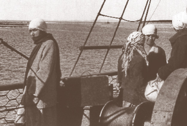 Погрузка на пароход. "Река - Северная Двина... Загнали на пароход "Глеб Бокий", в трюм, прямо на днище, шпангоуты торчат, вода по щиколотку. Заорали,зашумели: "Доски давай!" Взяли десяток парней - приволокли доски. Стояли сутки, пока загружали пароход. Пить, жрать охота, на оправку не выводят. Закрыли трюм - пошел, поплыли! Еще только через сутки накормили, дали воды. На палубу не пускают. Параши не поставили... А в трюме - друг на друге. Темно, вонь..." (Вацлав Дворжецкий. "Пути больших этапов")