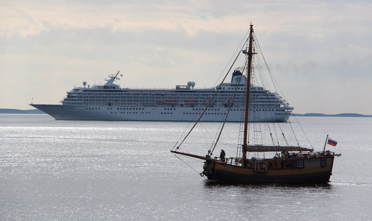 — Это "Святой инок Митрофан" под флагом флотилии Соловецкого монастыря. Флаг у них тоже святой: под ним монахи богомольцев до угодников Зосимы и Савватия перевозят.