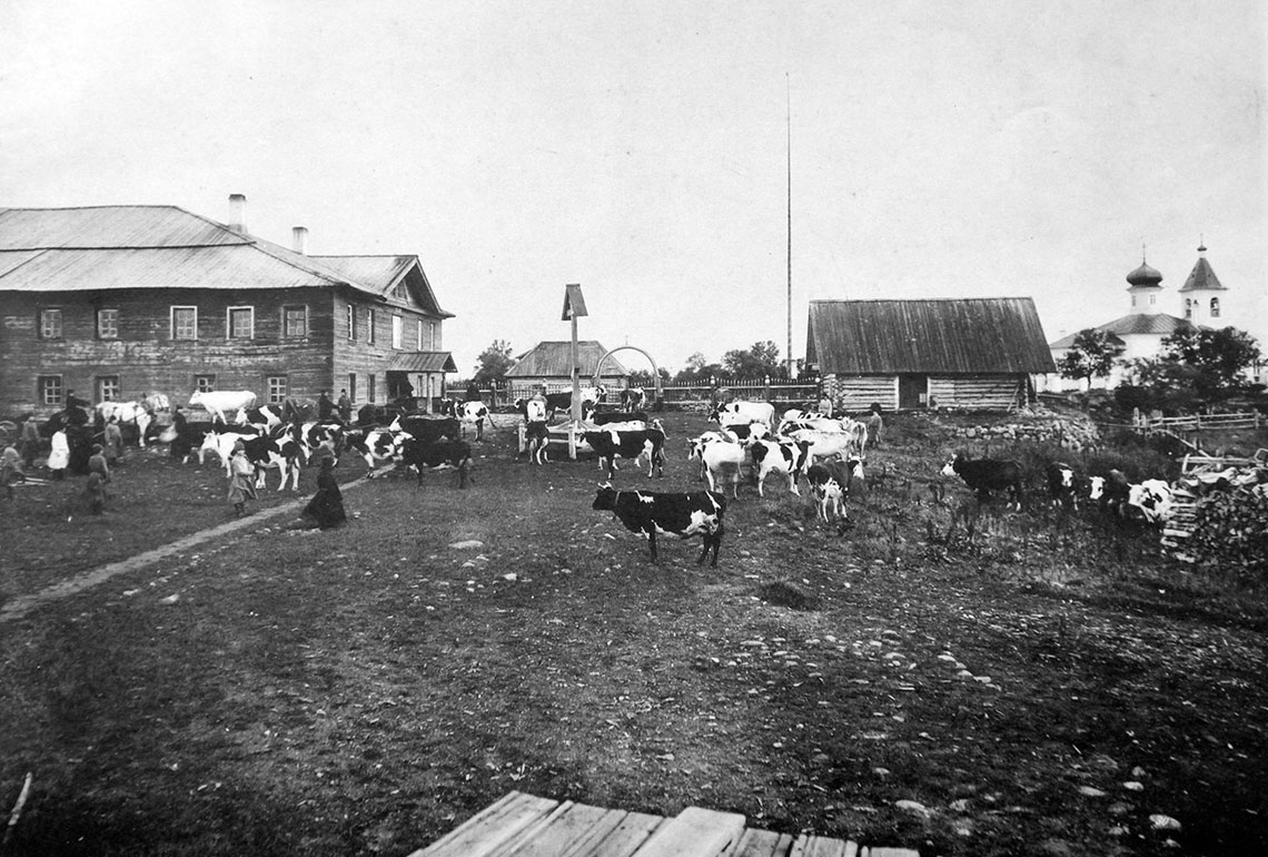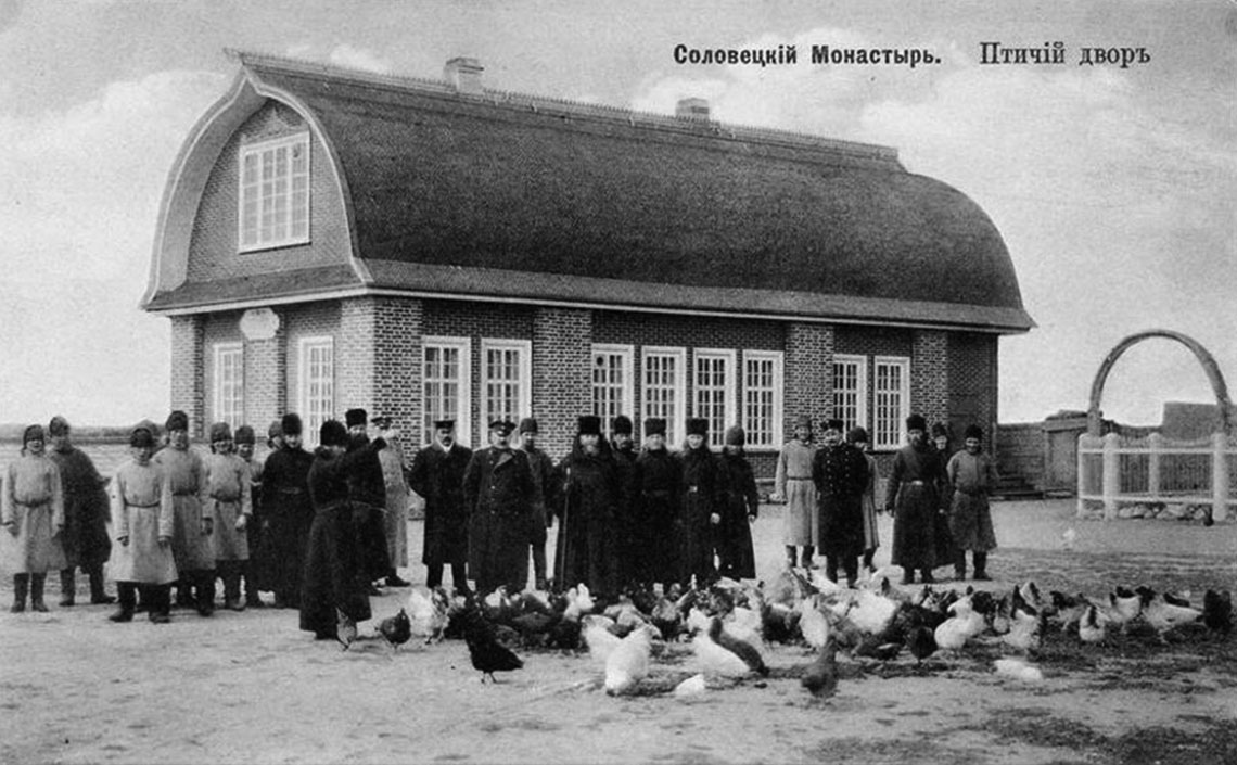 В. Немирович - Данченко, посетивший Соловки в 1872 году, восторженным удивлением писал о здешнем скотном дворе птичнике, о конюшнях и молочной ферме: он говорил о “голландской чистоте” всех помещений, о запасах первоклассных молочных продуктов, хранящихся в леднике, о рациональной постановке всего молочного хозяйства. “Мы привыкли, — писал он,—видеть нашего крестьянина в вечной грязи, а тут приходится убедиться, что эта грязь только результат его нищеты...”