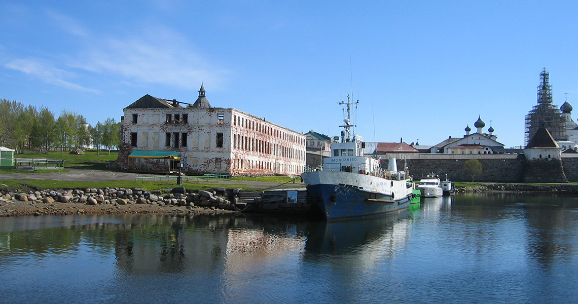 Гавань Благополучия Гавань защищена с запада островами Бабий, Вороний, Игуменский и др. На берегах гавани расположены строения бывшего Соловецкого монастыря; на ее восточном берегу возвышается кремль. Северный и восточный берега гавани укреплены почти сплошной каменной дамбой и набережной. Гавань Благополучия защищена от всех ветров и является лучшим местом для якорной стоянки в районе Соловецких островов. Гавань доступна для судов с осадкой не более 3,6 м и длиной до 70 м. В гавани Благополучия имеются два причала: Северный длиной 130 м и Западный длиной 80 м. Вход в Соловецкий залив и гавань Благополучия осуществляется по двум фарватерам, оборудованным створами светящих знаков. Один из них ведет с запада в Соловецкий залив и затем в гавань Благополучия, а другой с юга к якорному месту на Соловецком рейде.