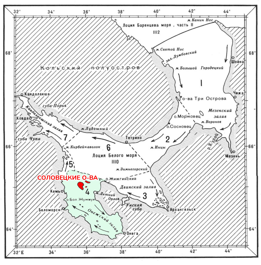 "Навигационное описание плавания вокруг Соловецких островов размещено в разделе "Онежский залив" (Гл. 4), которое является составной частью Лоции Белого моря. Это специфическое периодически корректируемое издание так и называется "Лоция Белого моря". Лоция является официальным документом – руководством для плавания. Как правило, она издается Министерством обороны." (Проурзин Леонид. Архангельск. 03.11.2005)