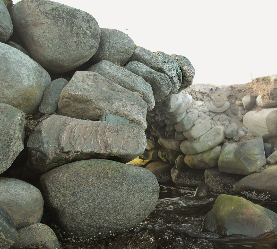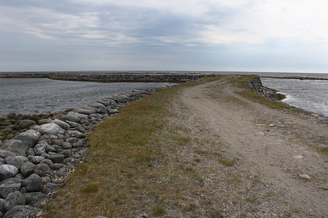Здесь-то, причудливо извиваясь по наиболее мелким каменистым участкам пролива, и проложена дамба, "сооружение грубое, но колоссальное, вечное", кажущееся скорее творением природы, чем делом человеческих рук.