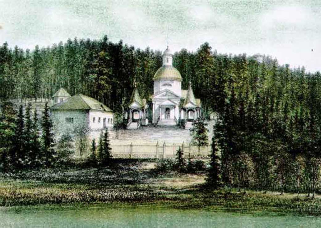 Пустынь основана святым Филиппом (Колычевым) в середине XVI в. как место для молитвенного уединения. На небольшом возвышении, откуда виден монастырь, поставили келию для игумена. Согласно преданию, здесь во время молитвы св. Филиппу явился сам Спаситель в окровавленном терновом венце и появилась из-под земли вода для колодца. Тогда здесь воздвигли часовню (1656). Позднее установили церковь в честь образа Богородицы Живоносный Источник (1838). В храме хранилось резное изображение Господа Иисуса Христа, сидящего в темнице, которое собственноручно вырезал св. Филипп. Рядом с храмом построили келейный корпус и часовню на месте келии св. Филиппа (1856). В часовне сохраняли камень, служивший изголовьем во время отдыха святого. Здесь жили схимонахи Герасим, Иоанн и монах Памфил - известные Соловецкие подвижники XIX в.