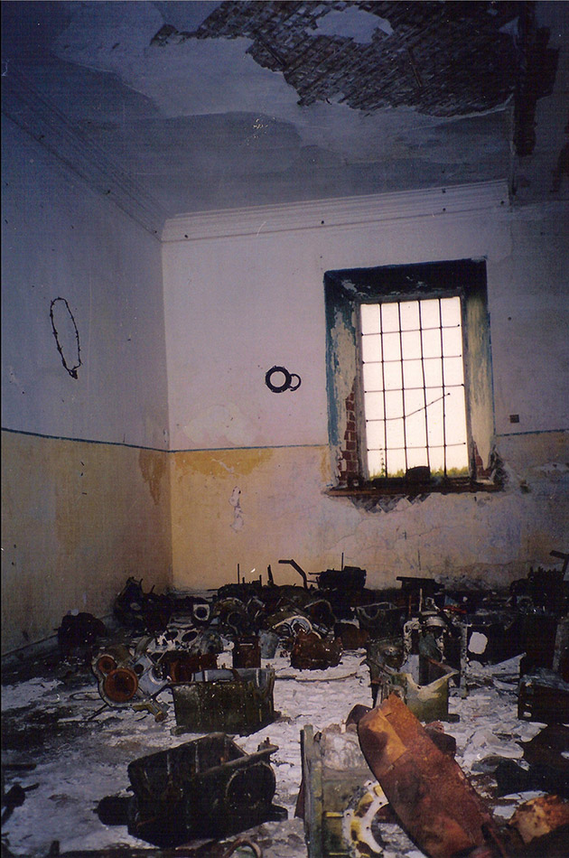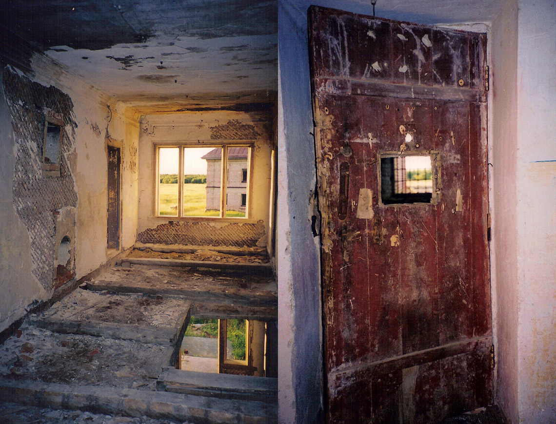 "Сергиевский корпус, построен в 1900 году. Каменный жилой корпус с хозяйственными погребами, построен в 1901-1905 годах. Впервые на Большую Муксалму я попал 7 лет назад, уже ближе к концу дня. Сергиевский скит при низком северном солнце производил тягостное впечатление. (Это был единственный раз когда мне посчастливилось бывать там в солнечную погоду, забегая вперёд скажу что в пасмурный день там ещё более не по себе). Особенно угнетал каменный корпус. Со времён лагеря там сохранились решётки на окнах, и двери с «намордниками» - отверстиями для подачи еды заключённым. Через пустые глазницы окон проглядывала сохранившаяся со старых времён лепнина на потолке. Не отпускало ощущение что мы попали в Зону. В некоторых бывших кельях-камерах на полу валялись непонятного назначения металлические детали, а одна комната просто была как из «Сталкера». Там на стене даже весел венок из колючей проволоки. В другой камере было чисто, стояла кровать. Всё время казалось что за нами кто-то следит. Позднее я слышал и читал рассказы о водящихся тут привидениях. Одну из легенд расскажу в следующем посте, где рассказ пойдёт о посещении Большой Муксалмы в 2002 и 2003 годах". (Алексей Будовский. Путепроводные заметки для очень неторопливых. Отчёт о поездке на Соловки в Сентябре 2006. Часть 3. "Большая Муксалма". Глава 1. "Краткая историческая справка и рассказ о посещении острова в 1999-ом году". На правах рукописи. LiveJournal. New York, USA. 2006)