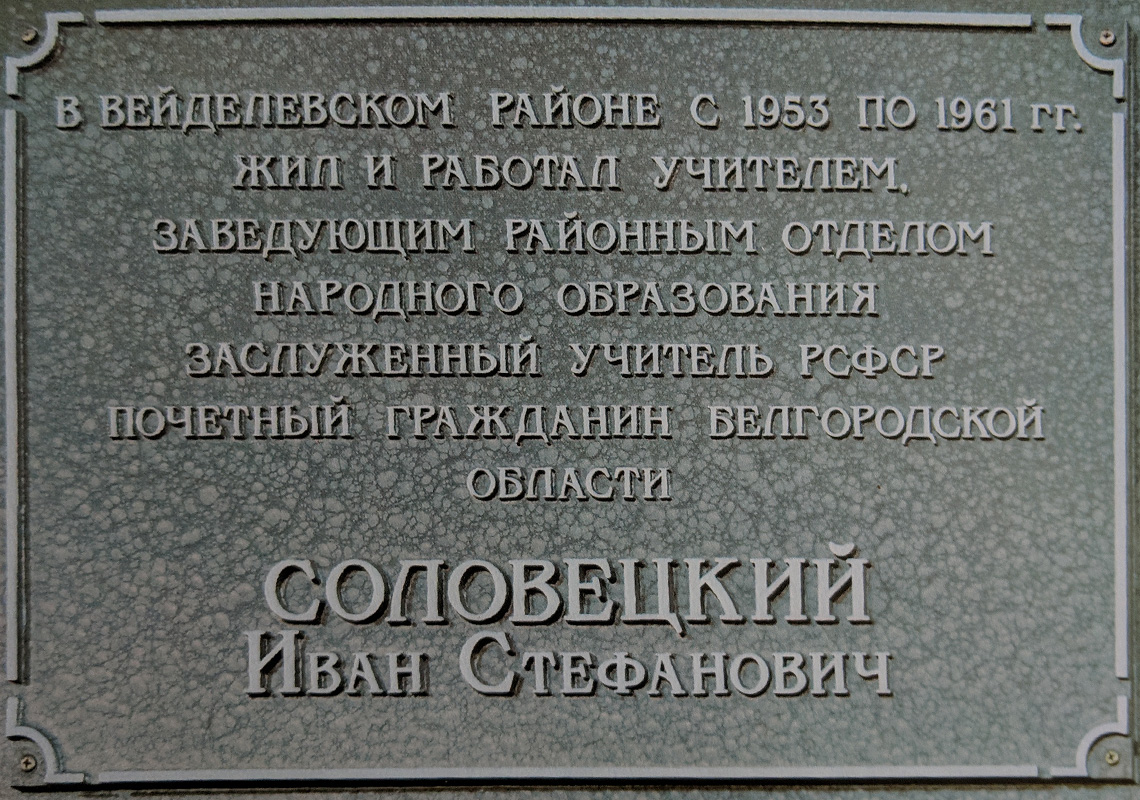 Фигура Соловецкого вырастала в бессребреника, положившего свои знания и жизнь на воспитание детей. В ответ на его преданное служение детям у белгородцев родилась даже мысль присвоить ему звание народного учителя. Но тогда этого звания еще не было. А когда оно появилось, оказалось, что присвоить его можно только рядовому учителю. Жаль!