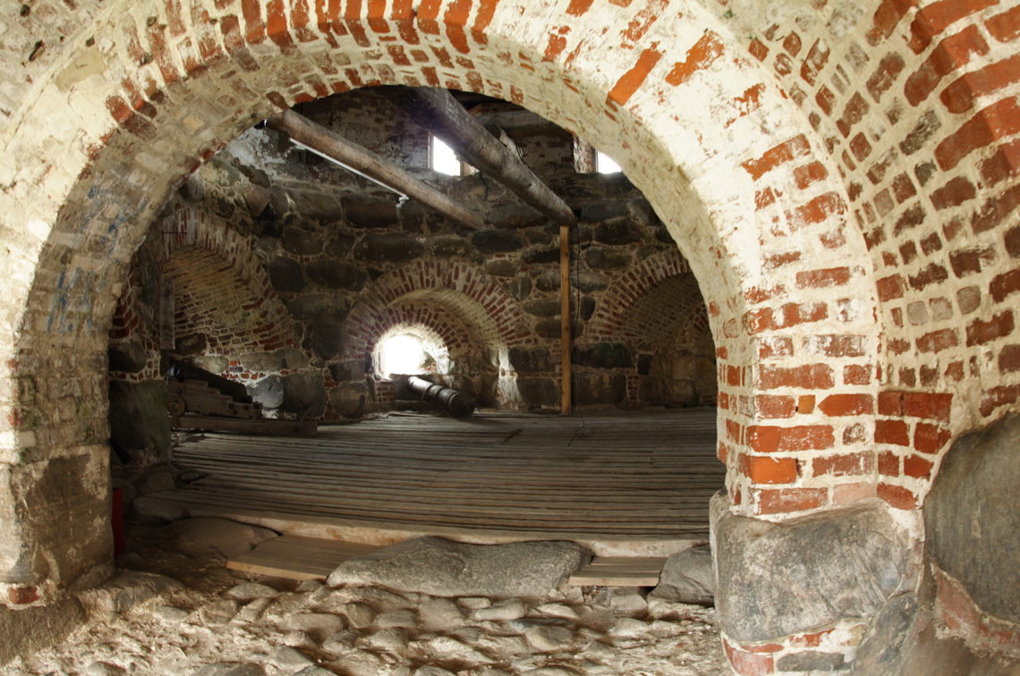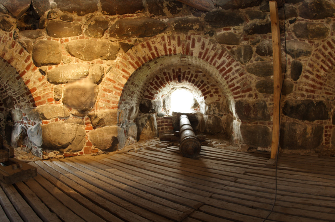 "Через несколько лет музей СЛОН (Так сокращенно именовались Соловецкие лагеря, находившиеся здесь в 1923-1940 гг.) предпринял разборку этих завалов. Было обнаружено много бердышей, копий, стрел, ядер и пр. Все эти вещи поступили в музей. Тогда же на яруса Прядильной башни были подняты хранившиеся в Кремле чугунные пушки XVII — XVIII вв., которые и в настоящее время находятся в нишах этой башни...