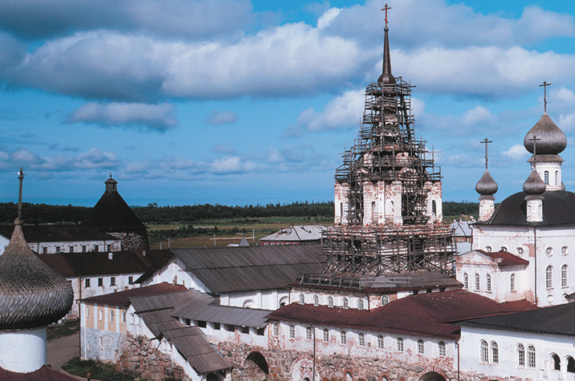 "Пожар уничтожил или повредил большую часть кремлевских построек. Выгорели Успенская церковь и трапезная палата с часовой башней. Сгорел шатер колокольни и деревянные балки, на которых висели колокола: сами колокола упали, некоторые распаялись, спеклись бесформенными слитками, большой колокол треснул насквозь. Погибли еще оставшиеся на Соловках части архива и библиотеки. Сгорели главы всех соборов, сильно отстрадали Никольская церковь, квасоваренный и рухлядный корпуса, галерея, повреждены были и башни, особенно Прядильная и Успенская, где находились коллекции старинного оружия. Комиссия определила общий убыток от пожара в 70 с половиной тысяч золотых рублей..." (Богуславский Густав. Острова Соловецкие: Очерки. Архангельск: Сев.-Зап. кн. изд-во, 1966. - 163 с: ил.).