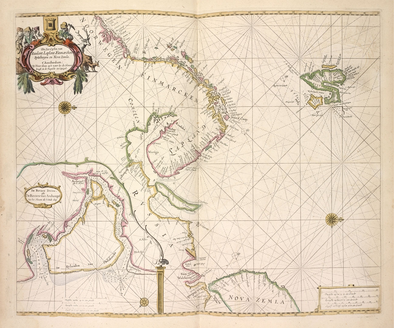 Карта Северной части России с нанесенными Соловецкими островами была опубликована Джоан и Корнелиусом Блеу (Johannes and Cornelius Blaeu) по материалам, собранным голландским дипломатом и картогрофом Исааком Массой (Isaac Massa). На карту нанесен регион от Финляндии до западных притоков реки Оби и от Новой Земли на севере до Казани на юге. Исаак Масса (Isaac Massa) был выдающимся голландским ученым, путешественником и картографом. Он возвратился в Голландию из России в 1609 году, имея на руках дневники и эскизы карт. Эти материалы легли в основу атласов Московии, выпущенных позднее семьей Блеу (the Blaeus) и Яном Дженсоном (Jan Jansson).